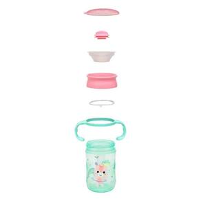 Esse copo é indicado para crianças a partir de 12 meses. Para utilizar, basta inclinar o copo e sugar lentamente. Ele é fácil de limpar, sendo recomendado lavar à mão com água e sabão neutro.