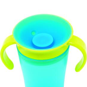 Alças fáceis de segurar que ajudam o bebê a tomar líquidos sozinho.