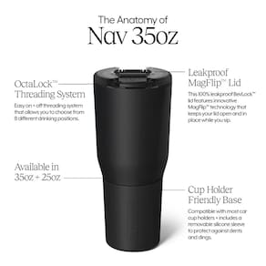 Nosso NAV 992 g é feito para a vida em movimento. É compatível com porta-copos, 100% à prova de vazamento para bebidas quentes, frias e carbonatadas e nosso isolamento BevGuard garante que suas bebidas favoritas permaneçam na temperatura perfeita até o último gole. - Totalmente à prova de vazamento e suporte de copo: a caneca de viagem BrüMate Nav é a única caneca de viagem isolada de 992 g, 100% à prova de vazamentos, adequada para viagens, projetada para manter suas bebidas quentes, frias e gaseificadas favoritas na temperatura perfeita em movimento. - Perfeita para bebidas quentes, frias e carbonatadas em movimento: inclui a tecnologia BevLock com a primeira tampa de bloqueio totalmente à prova de vazamento do mundo, para que você possa levar sua bebida aonde quer que vá sem se preocupar com vazamentos. Inclui uma base antiderrapante para que suas bebidas permaneçam no lugar sem deixar anéis em móveis ou mesas de escritório. - Mais de 24 horas frias, 6 horas quentes: graças ao nosso isolamento BevGuard, seu nav manterá suas bebidas favoritas geladas por mais de 24 horas e quentes por mais de 6 anos sem qualquer sabor metálico. - ACABAMENTOS SEGUROS PARA LAVA-LOUÇAS: Todos os acabamentos podem ser lavados na máquina de lavar louça, exceto o leopardo dourado e o onyx leopard. - Garantia vitalícia: Apoiado por nossa garantia vitalícia, o Nav será seu companheiro de bebida favorito para o longo prazo. - Sistema de rosca OctaLock: a inovadora tampa OctaLock simplifica a abertura e o fechamento do seu navegador, oferecendo 8 posições convenientes para beber com nosso design de rosca com patente pendente. Basta alinhar a tampa ligeiramente à esquerda da posição desejada, pressionar para baixo e girar para a direita para travá-la com segurança. Para remover, gire para a esquerda até parar e, em seguida, levante. Sem esforço e preciso, sempre.