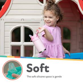 - Bico macio sem derramamento: o bico de silicone macio é suave para gengivas e dentes; o topo do copo é projetado para evitar gotejamentos e derramamentos e mantém o bico protegido quando a tampa é fechada
