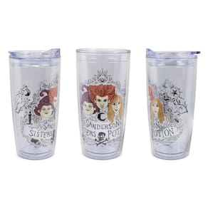 - DE BAIXO PARA CIMA: celebre o Hocus Pocus da Disney com este copo oficialmente licenciado com as irmãs Sanderson; as bruxas Winifred, Sarah e Mary! O Tumbler diz “Poção das Irmãs Sanderson”.