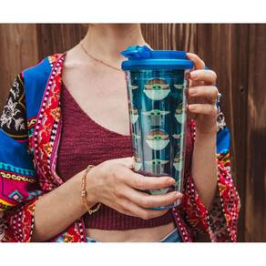 - QUEREMOS VER O BEBÊ: O copo de viagem de cor azul é revestido de parede com um design de desenho animado de Grogu, mostrando nossa fundação dentro e fora de seu carrinho flutuante. Ele está pronto para ir aonde quer que a aventura o leve.