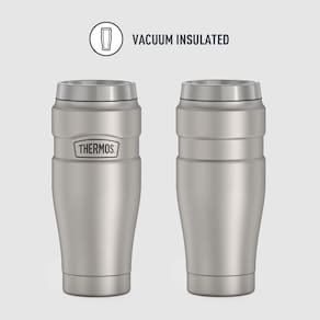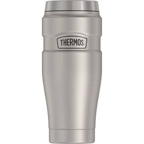 Thermos Stainless King copo de viagem térmico, 470 ml, preto fosco - Capacidade de 470 ml. - Tecnologia de isolamento térmico a vácuo Thermos para retenção máxima de temperatura. - Mantém o conteúdo quente por até 7 horas e gelado por até 18 horas. - Aço inox durável por dentro e por fora. - Tampa com vedação DrinkLock mantém as bebidas seguras quando na posição fechada.
