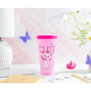 Dê ao seu drinkware uma classe extra leve um pouco da vida noturna de Paris para casa com este copo exclusivo que muda de cor com Marie de Os Aristogatos da Disney. Não basta pensar rosa, você precisa beber rosa. Felizmente, Marie, a gata atrevida, está aqui para mostrar como é feito. Neste copo de viagem que muda de cor, você verá o pigmento mudar do claro para o escuro enquanto despeja uma bebida fresca e refrescante. A linda gatinha com uma aparência satisfeita consigo mesma na ilustração, posando ao lado das palavras "Perfectly Cute". Aproveite a quantidade pura de refresco Marie está pronta para enfrentar o dia com estilo. Passe pela sua rotina da maneira mais elegante com este lindo copo de viagem. Projetado com plástico livre de BPA, sem toxinas, vem coberto com uma tampa removível e canudo reutilizável para quando você e os gatinhos estiverem em movimento. Faça de cada aventura pelas ruas de Paris um assunto frio com os cubos de gelo de plástico incluídos. Aproveite algumas das melhores coisas da vida com esta bebida oficialmente licenciada inspirada em Os Aristogatos da Disney. Instruções de cuidado: lavar à mão apenas, não pode ir à máquina de lavar louça, não é seguro