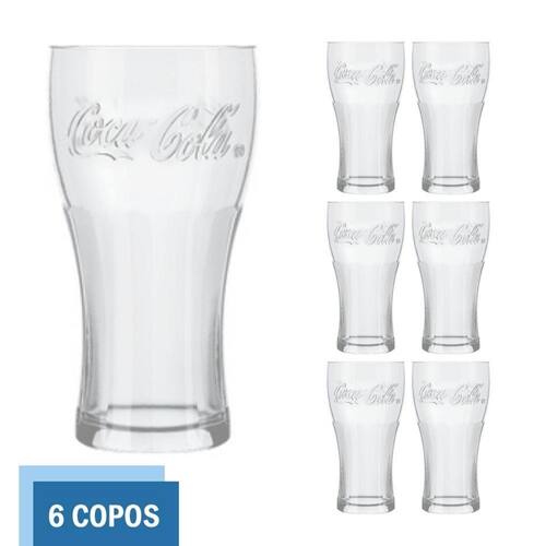 Jogo com 6 Copos De Vidro 470ml Coca Cola Contour Nadir Figueiredo