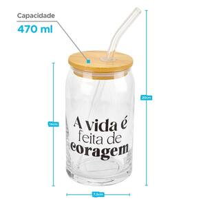 - Capacidade 470ml - Design Atraente: frases para inspirar seus dias. - Material eco: Vidro e tampa de bambu durável - Praticidade: Canudo de vidro incluído. - Versatilidade: Perfeito para sucos, smoothies e outras bebidas refrescantes. Marca: Não Informado