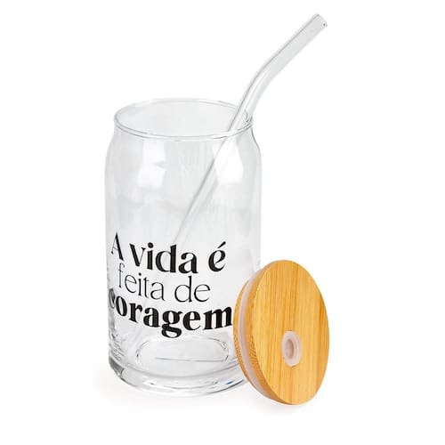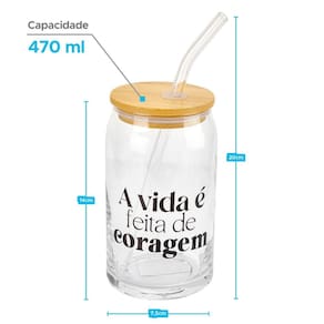 - Capacidade 470ml - Design Atraente: frases para inspirar seus dias. - Material eco: Vidro e tampa de bambu durável - Praticidade: Canudo de vidro incluído. - Versatilidade: Perfeito para sucos, smoothies e outras bebidas refrescantes. Marca: Não Informado Ean: 789976672397