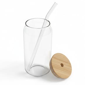 01 Copo De Vidro com Tampa E Canudo Drink 500ml