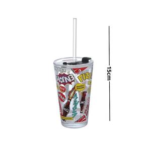 Copo de Vidro Drink Fizz Coca 450ML Com Canudo - Hauskraft