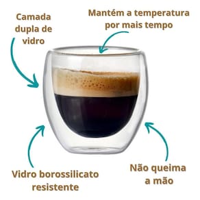 Copo lindo e sofisticado com dupla parede. Ideal para café, chá, chocolate e até mesmo para servir brigadeiro de colher ou outra sobremesa. Deixe o cantinho do café ainda mais charmoso. Ótimo item para presente Proporciona delicadeza, sofisticação e modernidade.