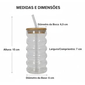 Este copo é o presente ideal para quem ama itens de papelaria, organização e decoração. Excelente para compor fotos de "estilo de vida" ou para tornar o seu café da manhã muito mais instagrável! Copo De Vidro Forma de Onda com Tampa E Canudo Gomado 550ml