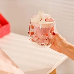 Este charmoso copo com formato de patinha de gato é feito de vidro resistente com parede dupla, que ajuda a manter a temperatura da bebida por mais tempo, sem esquentar ou esfriar o lado externo ao toque.
