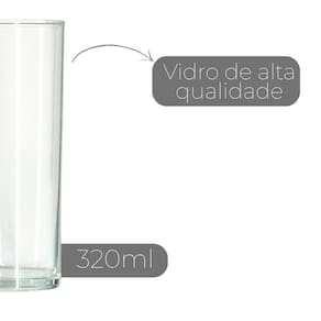 Destina-se ao serviço de bebidas frias, sendo fabricado em vidro para não interferir no sabor ou aroma dos líquidos. O material possui resistência a manchas e odores, contribuindo para a manutenção da higiene. Com capacidade de 320ml, permite porções individuais para consumo de água, sucos e outras bebidas.