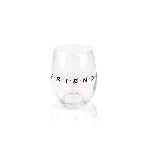 - Vidro sem alça: este vidro sem haste apresenta o emblemático logotipo Friends Doodle, para que você possa sempre levantar um copo com seus amigos por perto