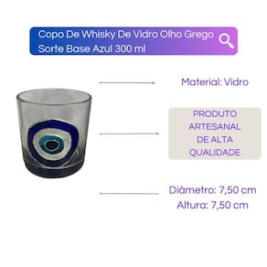 o copo de whisky de vidro olho grego sorte é úm ótimo copo que pode ser utilizado como um item decorativo e é perfeito para compor o seu altar. Confeccionado em vidro que garante alta resistência e durabilidade. Possui desenho personalizado e exclusivo para você. Enviamos o seu copo em até 24 horas após a confirmação de pagamento
