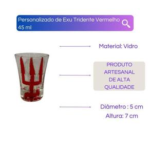 Copo Dose de Cachaça Vidro Exu Tridente Vermelho 45 ml Nadir Copo Dose de Cachaça Vidro Exu Tridente Vermelho 45 ml Nadir O Copo Dose de Cachaça da Bialluz é um ótimo copo que pode ser como um item decorativo e é perfeito para compor o seu altar. Confeccionado em vidro que garante alta resistência e durabilidade. Possui desenho personalizado e exclusivo para você. Capacidade: 45 Mililitros Diametro: 5,0 x 7,0 Enviamos o seu copo em até 24 horas após a confirmação de pagamento Material: Vidro Caso tenha alguma dúvida nos mande mensagem que respondemos rapidinho para te ajudar da melhor forma possível Marca: Não Informado Ean: 7890039433602