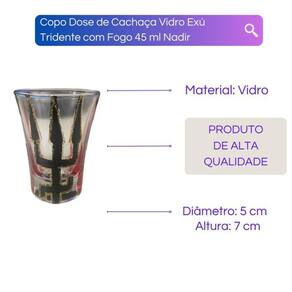 Copo Dose de Cachaça Vidro Orixás 45 ml - Selecione o Modelo Cor: Exú Tridente Fogo Copo Dose de Cachaça Vidro Orixás 45 ml - Selecione o Modelox000D x000d O Copo Dose de Cachaça da Bialluz é um ótimo copo que pode ser como um item decorativo e é perfeito para compor o seu altar. Confeccionado em vidro que garante alta resistência e durabilidade. Possui desenho personalizado e exclusivo para você. x000d x000d Escolha um dos modelos disponíveis na opção COR do próprio anúncio.x000d x000d Capacidade: 45 Mililitros x000D Diamêtro: 5,0 x 7,0x000D Material: Vidrox000D x000d Enviamos o seu copo em até 24 horas após a confirmação de pagamentox000D x000d Caso tenha alguma dúvida nos mande mensagem que respondemos rapidinho para te ajudar da melhor forma possível