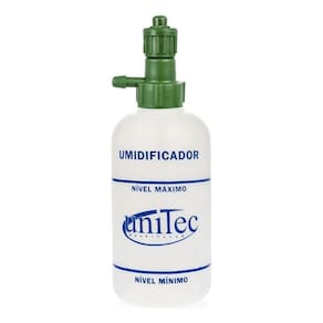 Frasco Umidificador para oxigênioterapia de 250 ml UNITEC Fabricantes: UNITEC Certificado pelo Inmetro, Anvisa, NBR. RDC e ABNT. Indicado para Umidificar os gases medicinais. Utilizado para oxigenação, nebulização, anestesia e demais procedimentos clínicos e médicos. Umidificador Frasco de 250ml em PVC Tampa e porca injetados na cor do gás, frasco de PVC com nível mínimo e máximo. Conexão padrão ABNT NBR 11906 Anvisa 10432300011 Os frascos de Umidificador para oxigênio dispõem de difusor no qual o fluxo é ajustado pelo fluxômetro. Durante o processo o mecanismo do frasco e do fluxômetro permite que a água borbulhe e absorva pequenas partículas de oxigênio, ofertando ao paciente o nível de umidade necessário ao seu tratamento. Conexão padrão ABNT NBR 11906 Certificado pelo Inmetro, Anvisa, NBR. RDC e ABNT.