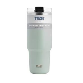 Copo térmico de inox com capacidade de 900ml, contém tampa acrílica com bocal e trava de segurança e uma pequena tampa emborrachada para dissipação da temperatura.