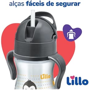 O Copo Evolution 240ml com alça Lillo possui canudo retrátil em silicone macio que facilita a sucção durante o momento de atividades dos pequenos, além de ser removível para facilitar a higienização.