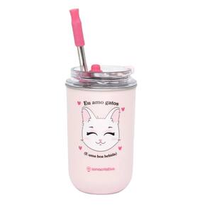 Especificações: Marca: zona criativa Modelo: eu amo gatos Altura: 14cm largura: 7cm comprimento: 7cm Material: aço inoxidável e plástico Capacidade: 300ml Bpa free Cor: rosa