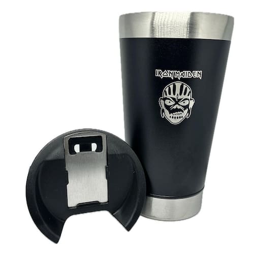 Copo Iron Maiden 500ml Isolamento Térmico + tampa + abridor Este copo térmico possui uma construção robusta com materiais de alta qualidade, mantêm sua bebida gelada ou quente por muito mais tempo.