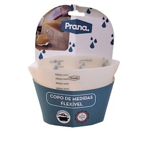 O Copo de medidas flexível da linha Gourmet da Prana forma um bico saliente ao ser apertado que direciona os líquidos com mais segurança e sem nenhuma sujeira.