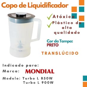 Copo jarra para liquidificador compatível com a marca mondial modelos turbo l 850w, l 900w translúcido/ leitoso com tampa preta não serve filtro.