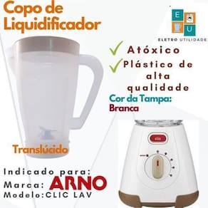 Copo liquidificador arno clic lav translúcido tampa branca Copo para liquidificador compatível com a marca arno para o modelo clic lav translúcido com tampa branca, não serve filtro.
