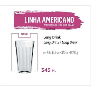 Copo long drink Copo Americano 24 Vidro 345ml Copos Cerveja