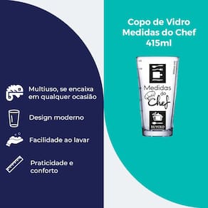 O magnífico Copo de Vidro Medidas do Chef 415ml é a opção perfeita para quem aprecia tanto a precisão na cozinha quanto o estilo à mesa. Com sua capacidade de 415ml, ele é ideal para medir ingredientes líquidos com facilidade e precisão, tornando-o um ótimo aliado na hora de preparar suas receitas favoritas. Produzido com vidro de qualidade superior, o Copo de Vidro apresenta durabilidade e resistência, além de proporcionar uma excelente clareza para facilitar a leitura das medidas. Seu design prático e moderno, combinado com a escala de medidas visível, torna-o uma ferramenta essencial para chefs amadores e profissionais. Além de ser funcional, o Copo de Vidro Medidas do Chef também traz um toque de elegância à sua cozinha, podendo ser utilizado para servir bebidas ou até mesmo como parte de sua coleção de utensílios de cozinha. Seja para medir, servir ou decorar, este copo agrega praticidade e estilo a qualquer ambiente. Material: Vidro.