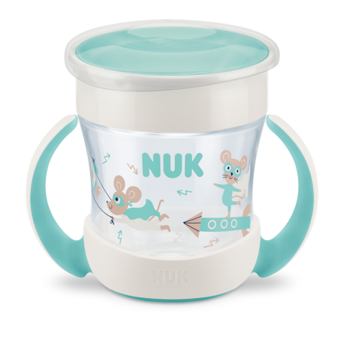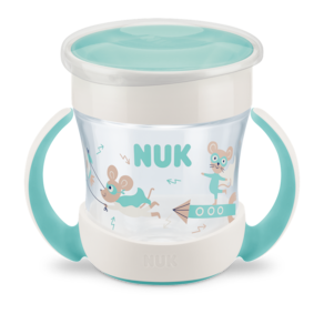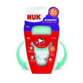 O Copo Mini Magic Cup 360° NUK Evolution 160ml foi especialmente desenvolvido para ensinar a criança a beber de forma independente e incentivar um dos momentos mais importantes no desenvolvimento do bebê, além de contribuir com suas habilidades manuais possibilitando à criança o uso de um copo semelhante ao utilizado pelos seus pais e com a segurança de não se sujar ou quebrá-lo.
