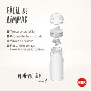 O Copo Mini-Me Sip Inox da Nuk foi cuidadosamente projetado com um design ergonômico e inovador em aço inoxidável de parede única, resistente e durável.