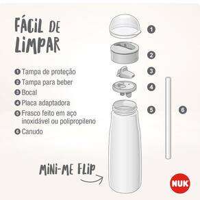 O Copo NUK Mini-Me com bico Flip 500ml é ideal para manter a hidratação em suas atividades diárias. Seu bico é resistente a mordida e pode ser utilizado tanto como um copo com canudo ou como uma garrafa de bebida.O frasco do Copo NUK Mini-Me foi cuidadosamente projetado com aço inoxidável de parede única, resistente e durável. Recomendado para crianças a partir de 12 meses, é fácil de segurar e seu design ergonômico torna a hora da hidratação mais prática. O copo em aço inoxidável não é adequado para uso com bebidas quentes ou gaseificadas. Leia atentamente os avisos e instruções no interior da embalagem.O produto é totalmente desmontável, facilitando sua limpeza. A coleção NUK Mini-Me vem com diferentes tampas e tamanhos que são totalmente intercambiáveis, e permite que o bebedor e rosca possam ser utilizados em todos os frascos da linha garantindo um ajuste perfeito à medida que seu filho cresce. O copo possui design inovador proporcionando uma experiência confortável e durável.