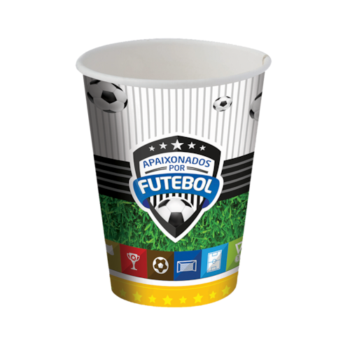 Copo Papel 200ml Apaixonados por Futebol C/8 Festcolor. Prepare-se para entrar em campo nessa festa! Transforme sua comemoração em uma inesquecível e emocionante partida com o tema de Futebol. Materiais produzidos com uma boa qualidade e cores impactantes, proporcione uma experiência única para seus convidados ao usar esses lindos copos.