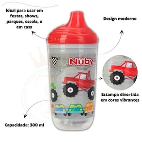 Copo pisca-pisca térmico com bico rigido 300ml nuby antivazamento Cor: vermelho Com o copo térmico pisca-pisca da nby, a hora da refeição será ainda mais divertida para o seu pequeno ou pequena com uma capacidade de 300ml, ele é perfeito para crianças a partir de 6 meses. Além disso, ele é livre de bpa, fácil de limpar e possui um material resistente e seguro, garantindo a durabilidade e a saúde do seu filho. As estampas divertidas são um show à parte, deixando o copo ainda mais atrativo e divertido. Com os leds sensíveis à pressão que piscam com o impacto, seu filho ficará encantado com a mágica que acontece a cada vez que ele dá um gole. O copo ainda possui um bico resistente a mordidas, evitando possíveis acidentes e sujeiras, e é antivazamento, garantindo a tranquilidade na hora da alimentação. Com o copo térmico pisca-pisca da nby, seu filho vai adorar a hora da refeição e você terá a segurança e praticidade que procura. Marca: Não Informado