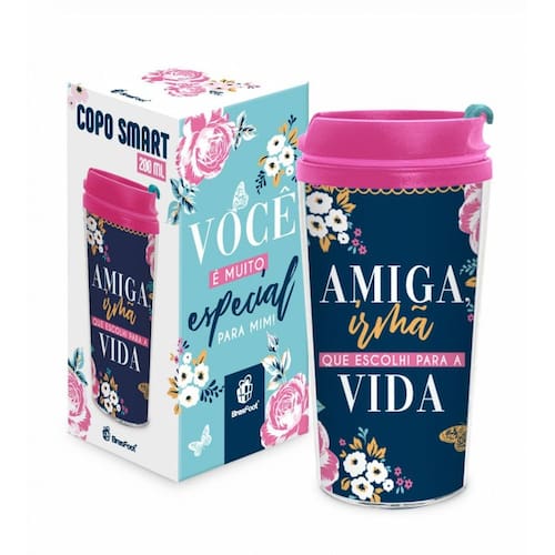O Copo Térmico Smart, Amiga irmã, da Brasfoot é prático e tem uma linda estampa na cor azul e rosa, com a frase, 'Amiga, irmã que escolhi para a vida, você é muito especial para mim", que o deixa ainda mais charmoso e bonito.
