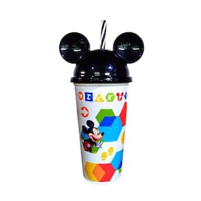 Copo com Canudo do Mickey com Orelhas Premium Plasútil Este lindo copo além de decorativo é bem construído com Plástico mais rídigo de boa qualidade e com a estampa do Mickey e orelhas que são um charme só, a hora do suco ou Shake será muito mais divertida á partir deste momento.