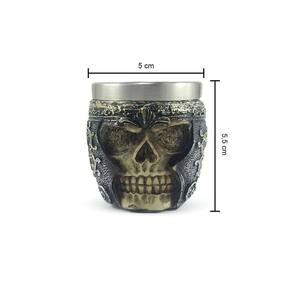 Copo Shot Decorativo Colecionável Medieval Caveira Guerreiro Viking Para Tequila Vodka Whisky Características: Copo Shot Medieval Caveira Guerreiro Viking, lindo copo com seu interior em aço inox e exterior em resina, confeccionado de modo semi-artesanal, ideal pra quem gosta de tomar um shot com família e amigos, pode ser usado como decoração por conta do fino acabamento e é uma ótima opção para presentear familiares e amigos. Especificações: - Modelo: Copo Shot Medieval Caveira Guerreiro Viking- Material: Aço Inox e Resina- Capacidade: 50ml - Alta qualidade- Design criativo- Ideal para Shot, usar como dosador para drinks, decoração, coleção entre outros Peso e Medidas Aproximadas: - Altura: 5,5cm- Largura: 5cm- Diâmetro: 5cm- Peso: 102g Itens Inclusos: - 01 Copo Shot Medieval Caveira Guerreiro Viking