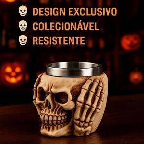 Design exclusivo de caveira com mãos tampando os ouvidos Interior em inox: resistente e fácil de limpar Presente criativo para ocasiões especiais Ótima peça decorativa e funcional