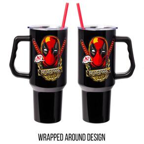 Silver Buffalo Copo de aço inoxidável Marvel Deadpool com alça e canudo, cabe no suporte de copo padrão, 1,134 g
