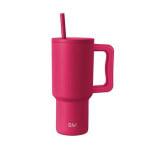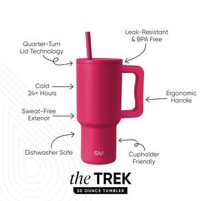 Copo Trek simples e moderno de 30 onças com alça e tampa de canudo | Caneca de viagem isolada de aço inoxidável compatível com porta-copos | Berry Twist
