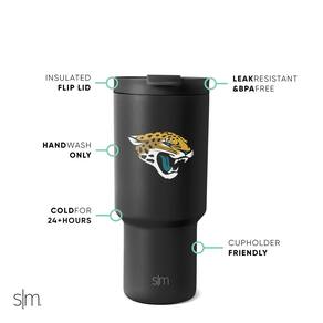 Simple Modern Copo oficialmente licenciado pela NFL Jacksonville Jaguars 850 g com tampa dobrável e canudos | Copo isolado de aço inoxidável | Presentes para homens e mulheres | Coleção Trek | Jacksonville Jaguars - Oficialmente licenciado: o presente perfeito do Jacksonville Jaguars! - Compatível com porta-copos – O formato afunilado torna o copo ideal – leve-nos com você aonde quer que você vá - À prova de vazamento: oferece uma tampa flip de vedação apertada. Vem com dois canudos - Isolamento de parede dupla: mantém as bebidas quentes ou frias por horas - Garantia vitalícia limitada e patente pendente