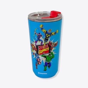 Depois de um dia repleto de aventuras tentando salvar o mundo, você precisa de um copo que te ajude a derrotar a sede A gente te ajuda Com uma tampa hermética e 500ml de capacidade, te acompanha em todas as aventuras Com uma pegada confortável, não importa qual é a bebida, esse copo te acompanha até o último goleO produto é , feito em aço inoxidável e plástico, com detalhes incríveis que vão fazer você se apaixonar Se você é do time que prefere um café quentinho, esse copo é para você, com paredes duplas que ajudam a manter a sua bebida E para completar o espetáculo, o copo conta com uma tampa por pressão e com abre e fecha em clique, que garante que não vaze nada Não importa se você vai bailar nas festas, ir para o trabalho ou faculdade, esse copo te acompanha em todos os lugares até o último goleEspecificações:Altura: 18cm Largura: 8,5cm Comprimento: 8,5cm Material: Aço Inoxidável e Plástico Capacidade: 500ml BPA FreeCuidados e recomendações de uso:Não preencha com líquidos até a superfície, deixe pelo menos 1,5cm de espaço para poder fechar o copo.Choques ou quedas podem trincar ou quebrar o produto.Não é a prova de pequenos vazamentos, carregue o produto apenas na posição vertical e não coloque em bolsas ou mochilas.Lavar com água, esponja macia e sabão neutro.Não recomendado colocar no freezer.Não vai ao micro-ondas.Não utilizar produtos químicos e abrasivos.