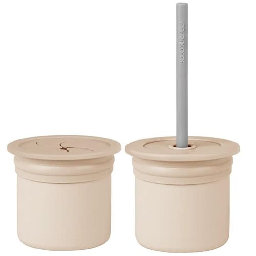 Copo Snack com Canudo Silicone Sip + Snack Beige e Grey - Minikoioi