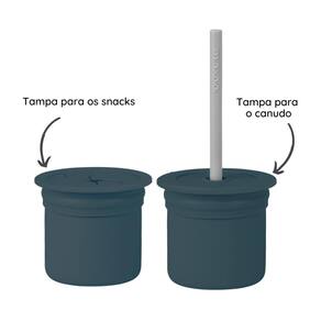 2 em 1, pode ser utilizado como copo com canudo ou recipiente para snacks.
