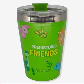 Copo Snap Dinossauro Zonacriativa Depois de um dia cheio de aventuras pré-históricas, precisa de um copo que te ajude a derrotar a sede? A gente te ajuda! Esse copo é para você é muito compacto, cabe em qualquer cantinho da bolsa ou da mochila! Agora você não tem mais desculpas para justificar o cafezinho gelado! O produto é importado, com detalhes incríveis que vão fazer você se apaixonar! É uma excelente companhia para o trabalho ou faculdade, feito em aço inoxidável, possui parede dupla o que ajuda a manter a temperatura da sua bebida por muito mais tempo! Com uma tampa rosqueável e com 300ml de capacidade para nunca te deixar na mão nas suas aventuras!