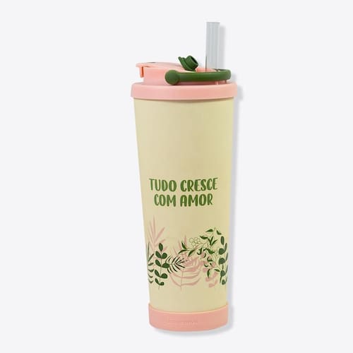 Você passou o dia todo explorando novas mudinhas, e não tem nenhuma companhia que te ajude a se hidratar A gente te ajuda Com 850ml e uma pegada emborrachada, esse copo vai deixar seu dia muito mais hidratado O produto é produzido em território nacional, feito em aço inoxidável, possui detalhes incríveis que vão fazer você se apaixonar Com um canudo removível, torna mais fácil a hora de beber água enquanto você explora novas aventuras, além de contar com uma escovinha para deixar a higienização do canudo mais fácil Com uma pegada emborrachada e confortável, conta com uma base de silicone removível, que evita que o copo fuja de você enquanto estiver na mesa Feito em aço inoxidável, ajuda a preservar a temperatura da sua bebida Não importa onde é a aventura, esse copo te acompanha em todos os lugaresEspecificações:Altura: 22cm Largura: 10cm Comprimento: 10cm Material: Aço Inoxidável Capacidade: 850mlCuidados e recomendações de uso:Não preencha com líquidos até a superfície, deixe pelo menos 1,5cm de espaço para poder fechar o copo.Choques ou quedas podem trincar ou quebrar o produto.Não é a prova de pequenos vazamentos, carregue o produto apenas na posição vertical e não coloque em bolsas ou mochilas.Lavar com água, esponja macia e sabão neutro.Não recomendado colocar no freezer.Não vai ao micro-ondas.Não utilizar produtos químicos e abrasivos.