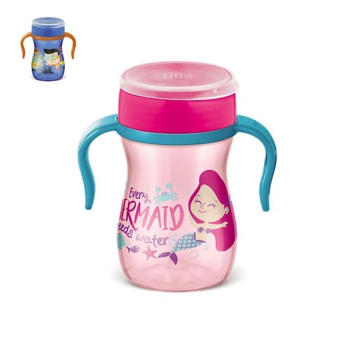Contém: 1 copo de 240 ml Indicado para crianças de 6 meses ou mais 6m+ Composição: frasco, válvula rígida, alça e tampa: polipropileno; bebedor: silicone Produto livre de BPA Recomenda-se antes de usar, lavar com sabão neutro e água corrente. Retirar da embalagem antes de oferecer a criança Usar sempre sob a supervisão de um adulto
