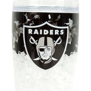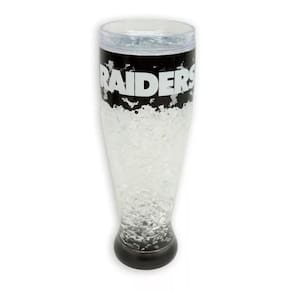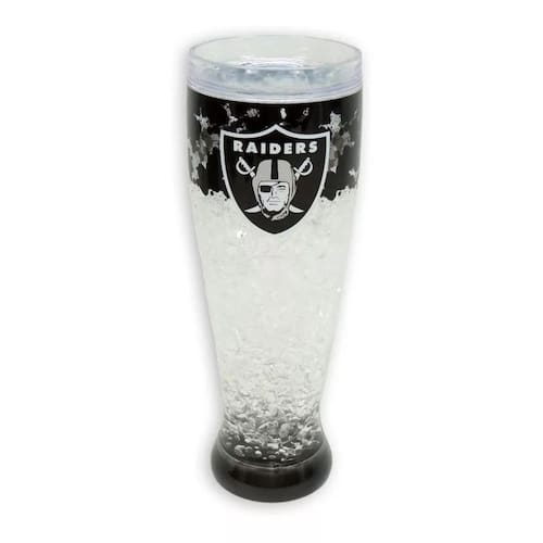 Marca: NFL Modelo: Plastic Freezer Pilsner Las Vegas Raiders Tamanho: 8,5 diâmetro boca x 6,5 diâmetro base x 24 altura em cm Capacidade: 450 ML Peso: 464 gramas
